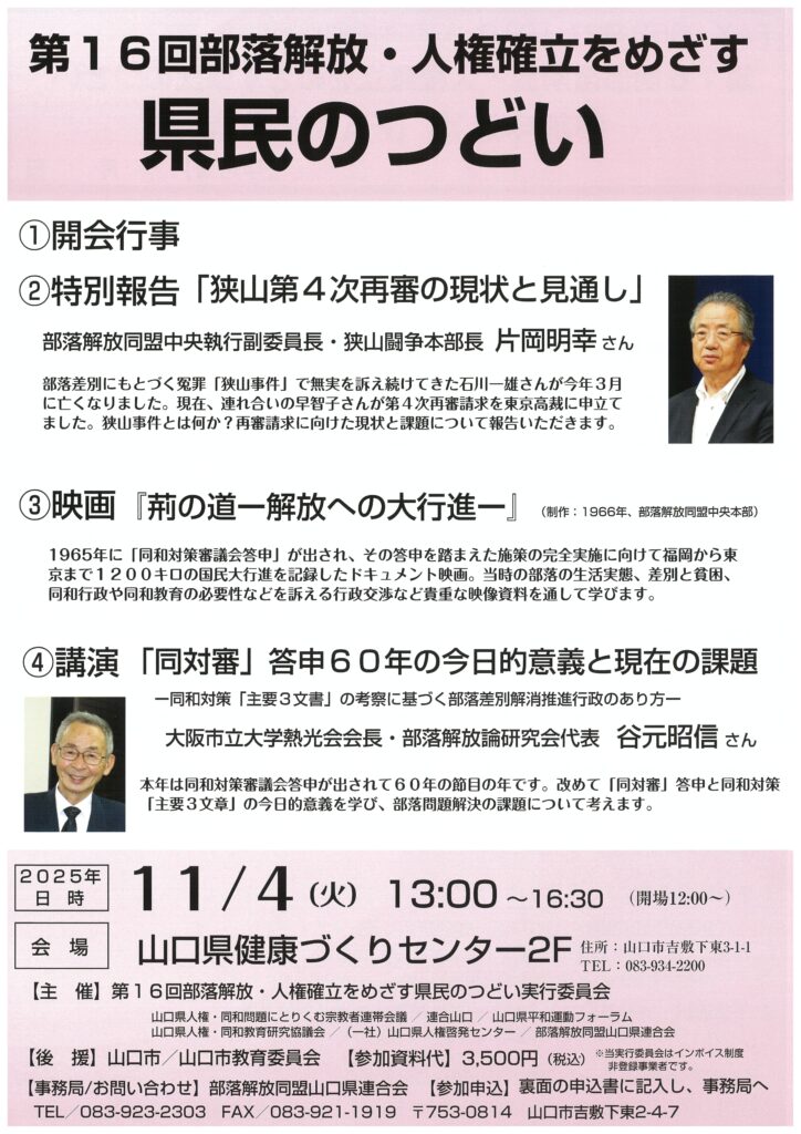 第16回部落解放・人権確立をめざす県民のつどい(ご案内) | 一般社団法人 山口県人権啓発センター(ご案内)
